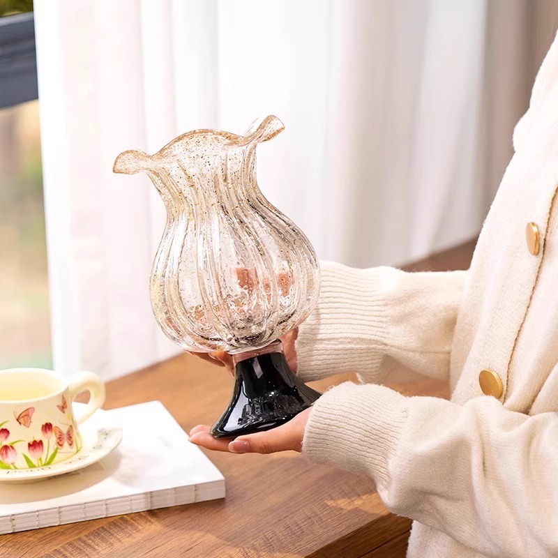 Productnaam: Luxe goudbesprenkelde vintage hoge glazen vaas