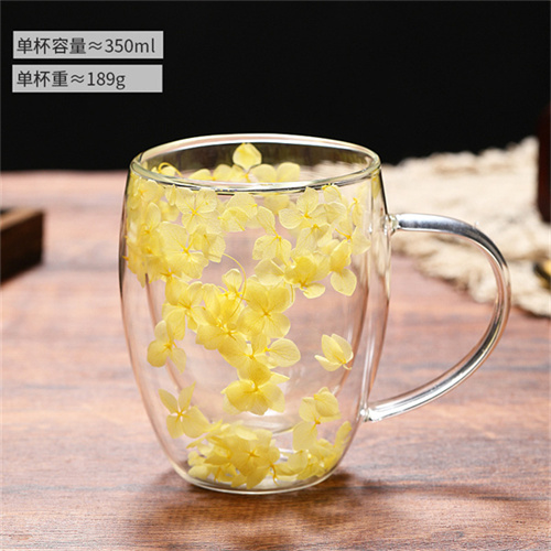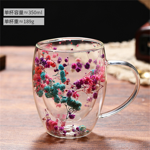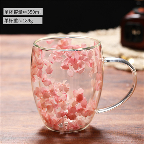3. De waterbeker van drijfzandglas met bloemblaadjes die op voorraad is, kan worden gevuld met gedroogde bloemen, met een verscheidenheid aan opties. Het zal niet ontploffen als het na bevriezing direct in kokend water wordt gegoten.