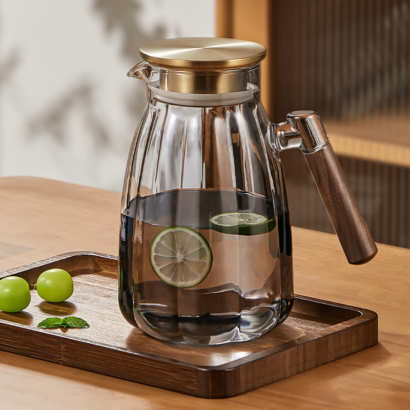 Productnaam: Pompoenvormige waterkan met notenhouten handvat